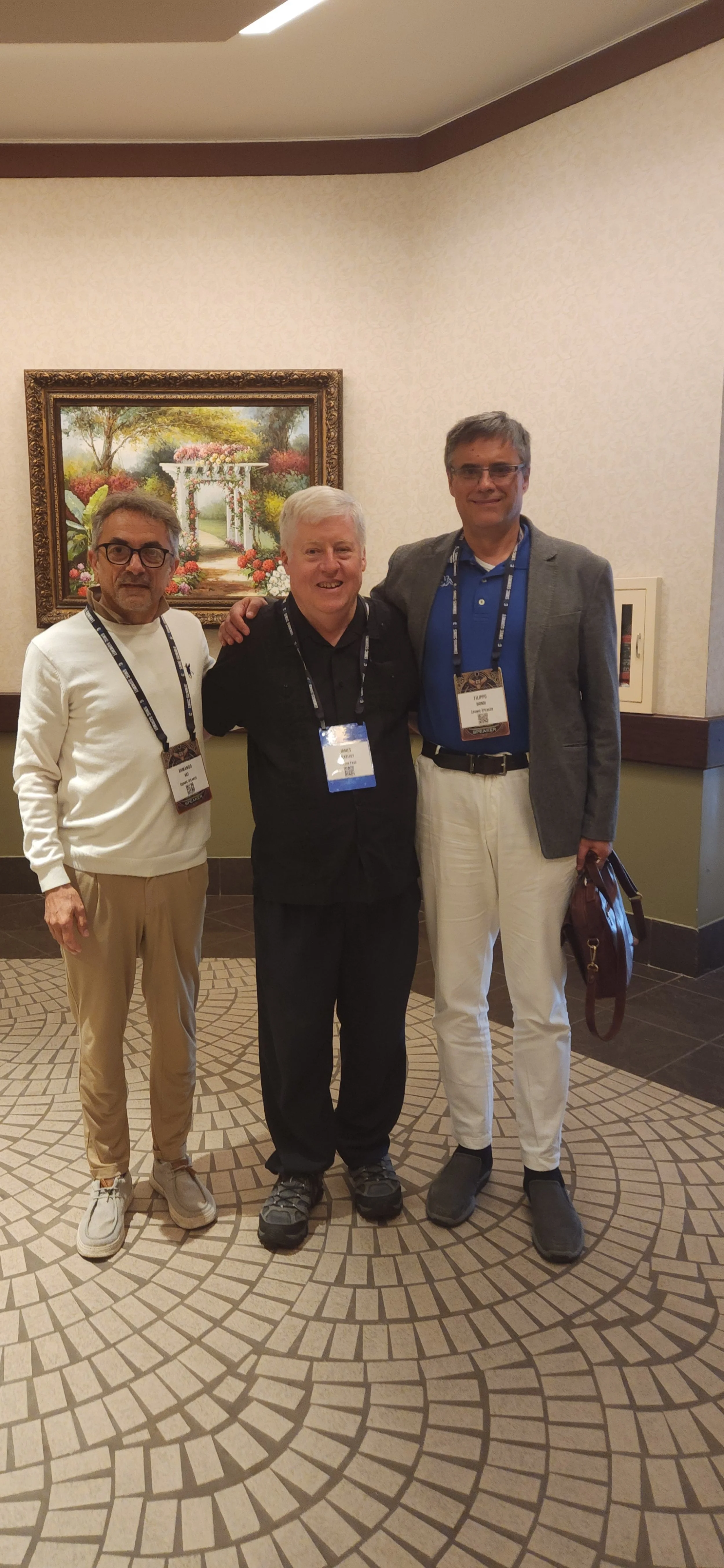 Armando Mei and Dr Filippo Biondi of the Khufu Project with J.P. backstage at Cosmic Summit on June 23, 2025.