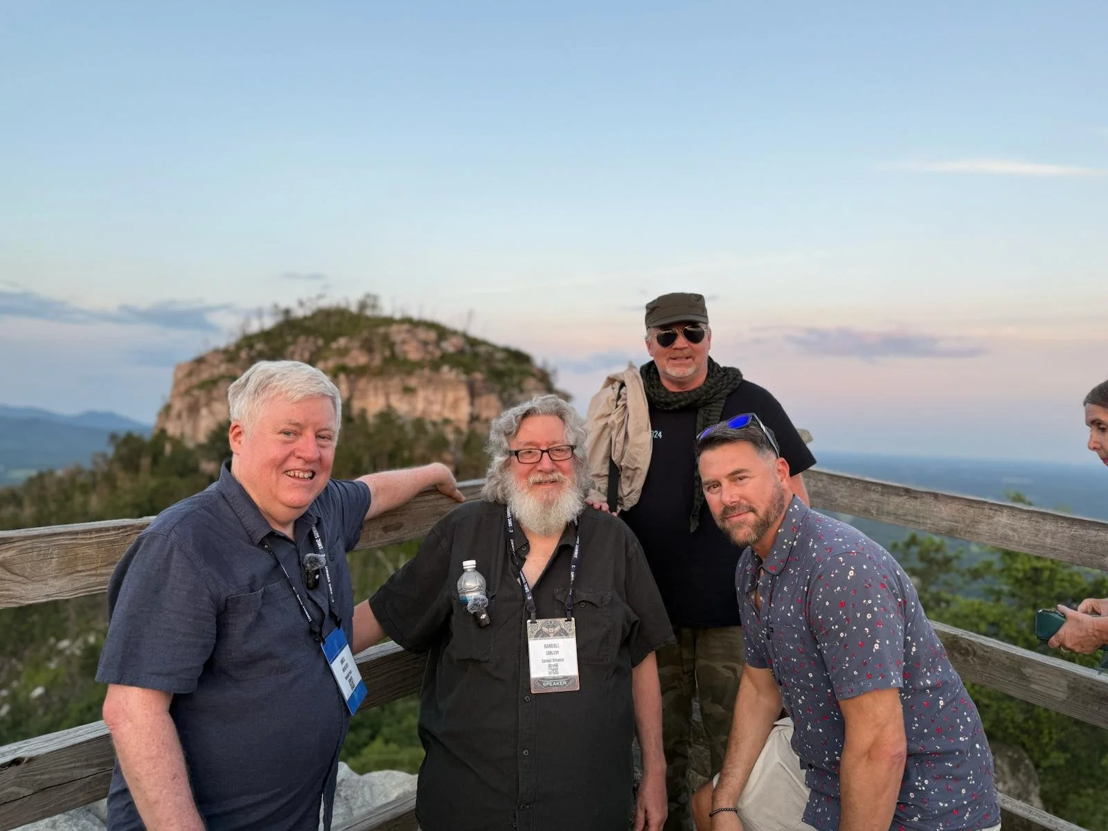 Wanted to offer a special thank you to Superintendent Jason Anthony and the park rangers who worked overtime to help make the Cosmic Summit bus excursion to Pilot Mountain very special. It was an extraordinary kick-off to the ancient history conference. It was a dream come true to have Eastern Band of the Cherokee wisdom keeper, Yona FrenchHawk, and legendary Randall Carlson speak about Pilot Mountain. Yona had done a sunrise marriage ceremony and a sweat lodge in Cashiers and then drove all the way to Pilot Mountain for the summer solstice ceremony on the same day!