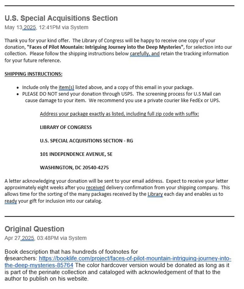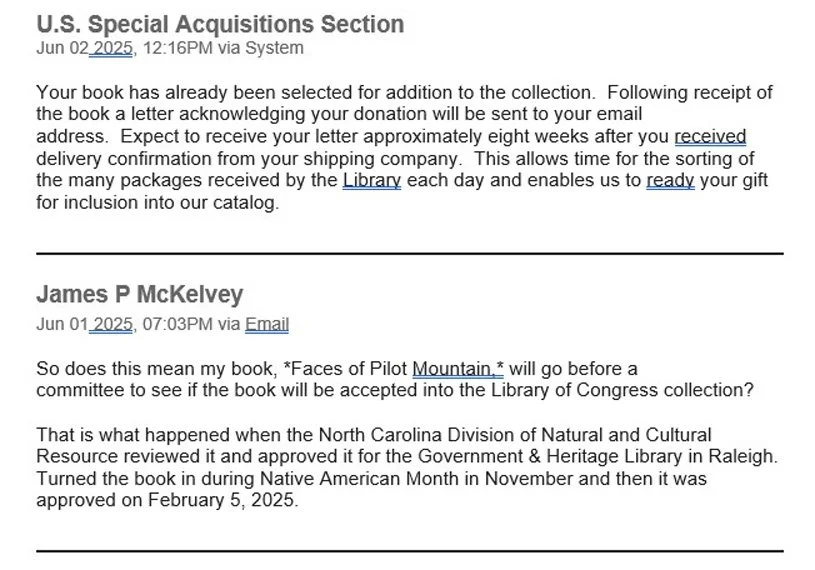 The response from the NC Park Service on July 24, 2025 states their position did not change even though the book is archived for researchers now in Raleigh, North Carolina and Washington, D.C.