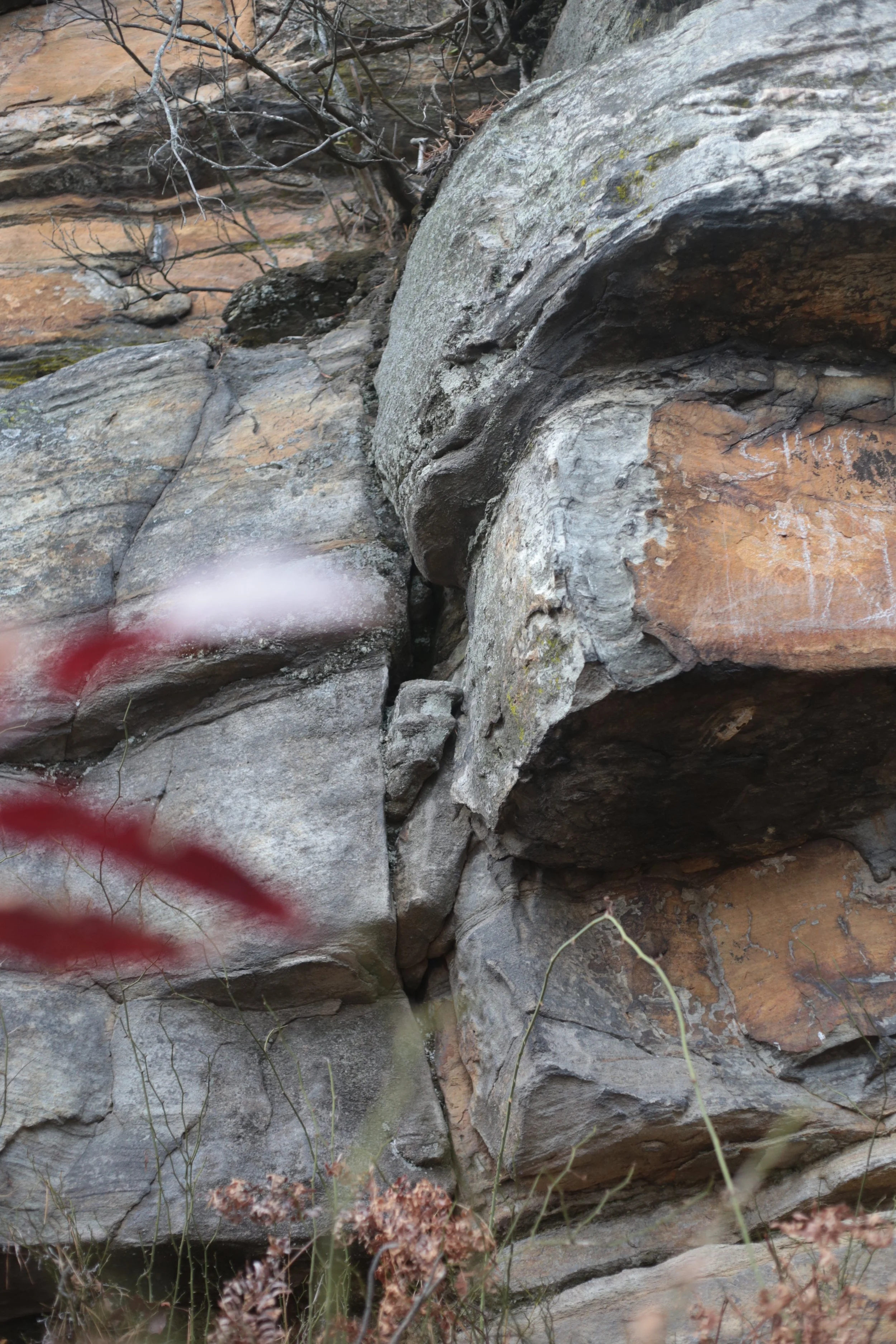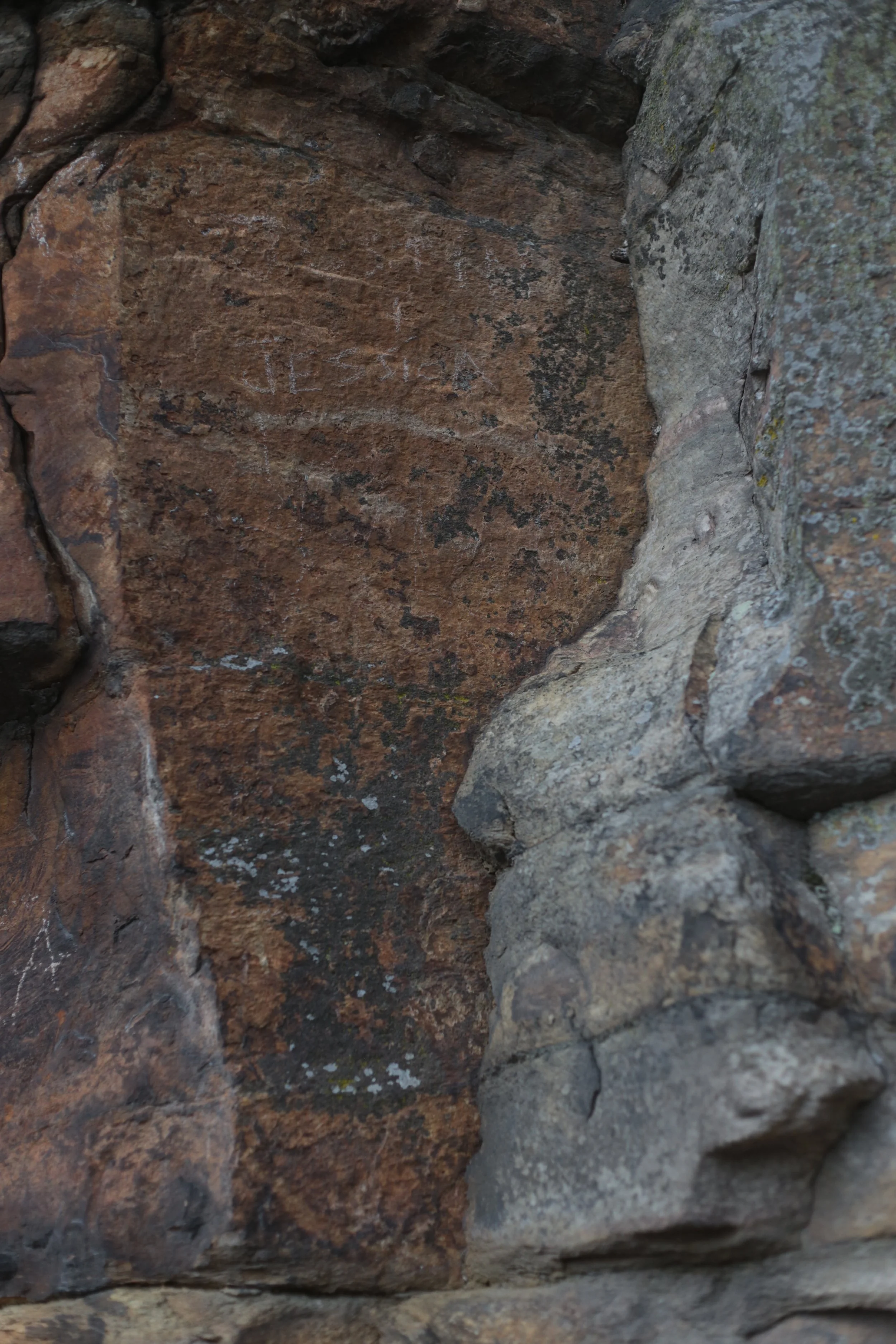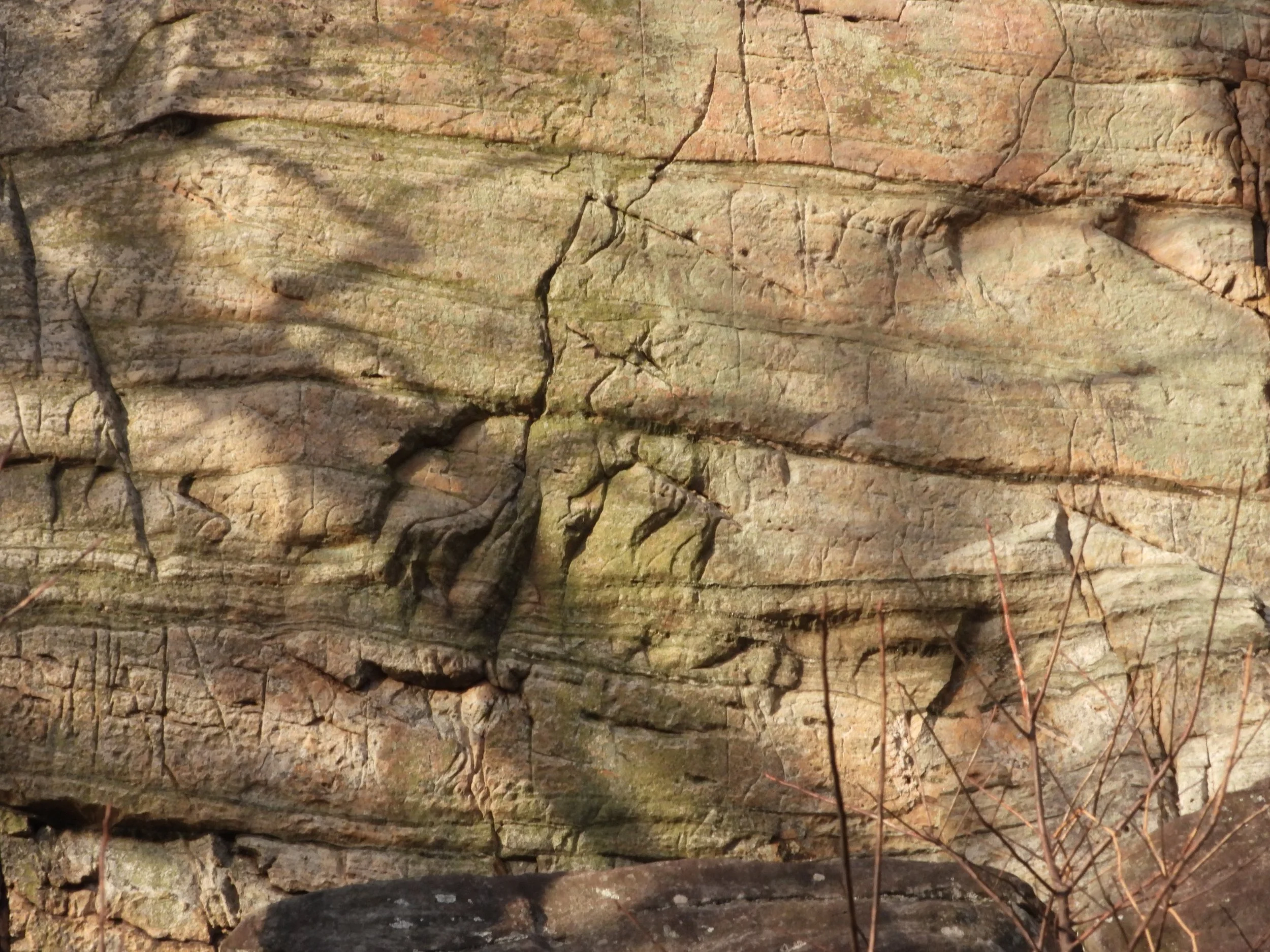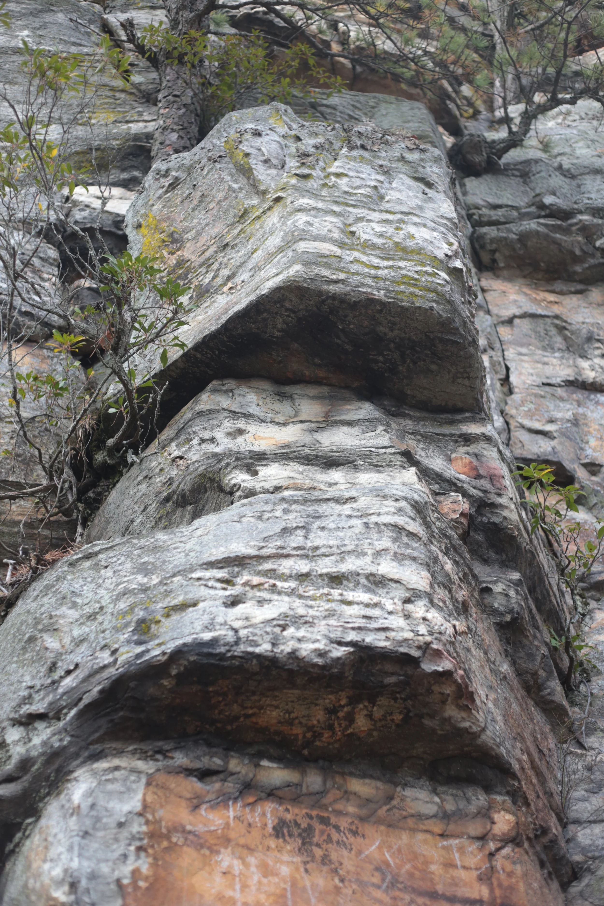 Above image is for scale and below is the stone face, but I think this is natural. This is also on the Ledge Spring Trail that is like walking up a ten story building ten times.