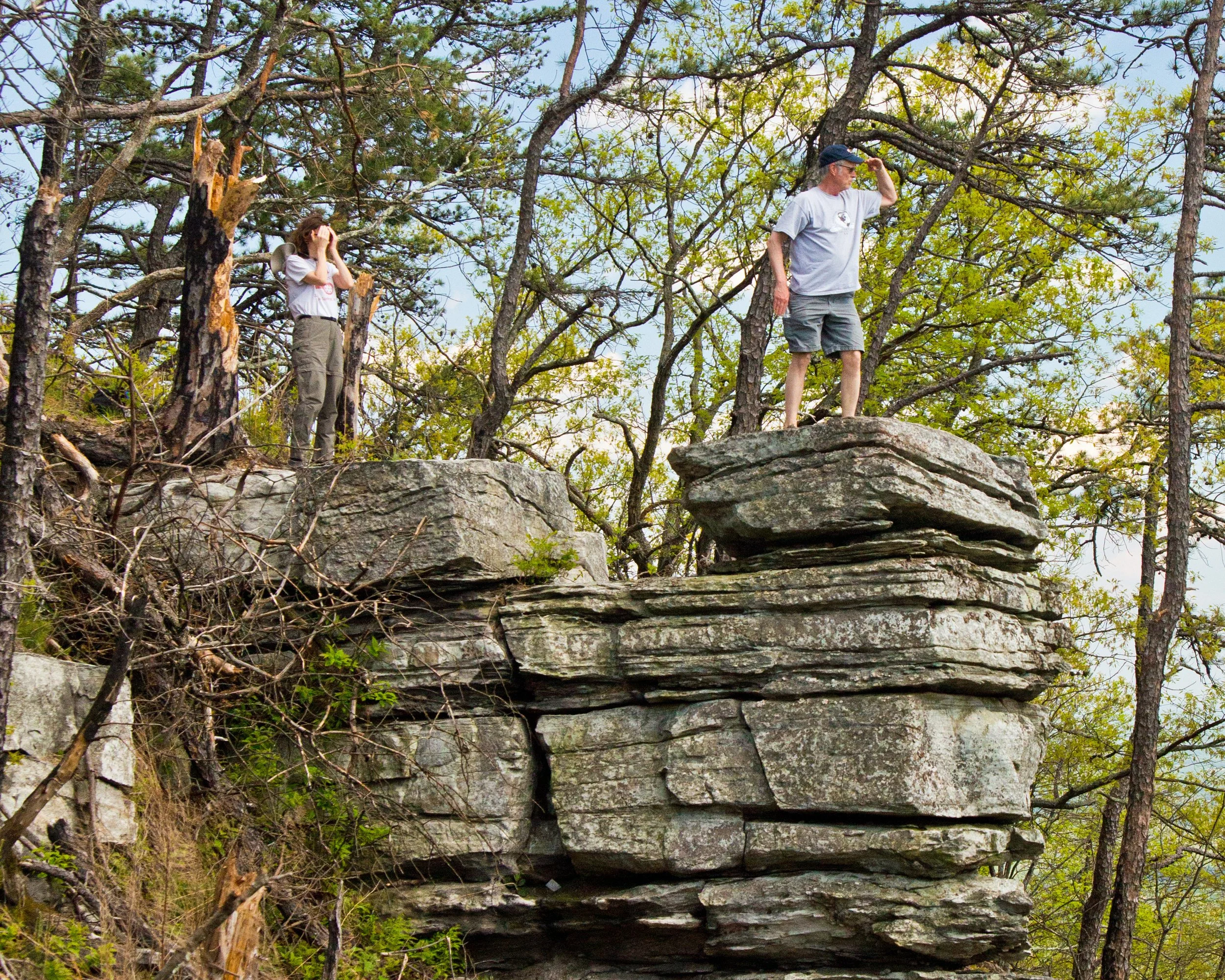 Proposal: First day walk around the Big Pinnacle on the Pilot Knob Trail and on another day take the Ledge Spring Trail. End the day with a view of the pyramid shadow from the Little Pinnacle that is getting close to the winter solstice extreme. The pyramid shadow will stand still for a few days and then return to the spring equinox position that can only be seen on the far side of the Big Pinnacle facing east.